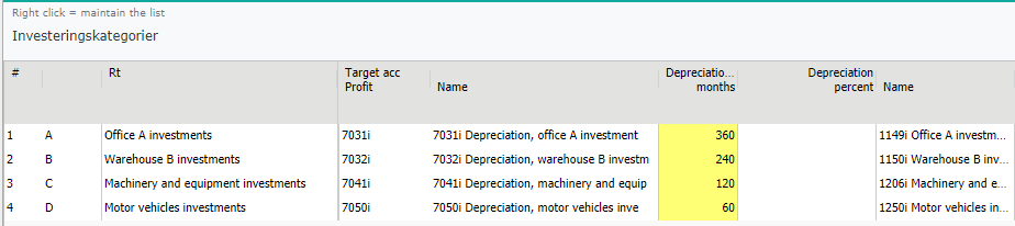 The purpose is to define investment forms’ balance sheet accounts steerings, used in form entry.