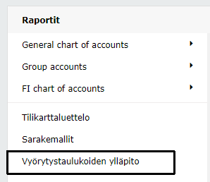 Ylläpito | Raportit | Vyörytystaulukoiden ylläpito