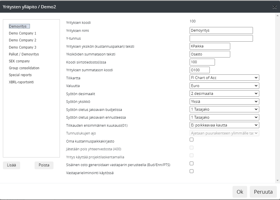 Oma kustannuspaikkakirjasto -merkintä tässä tarkoittaa, että yrityksellä on oma raporttiyksikkökirjastonsa. Tätä suositellaan käytettäväksi vain jos yrityksiä on yli 20.
