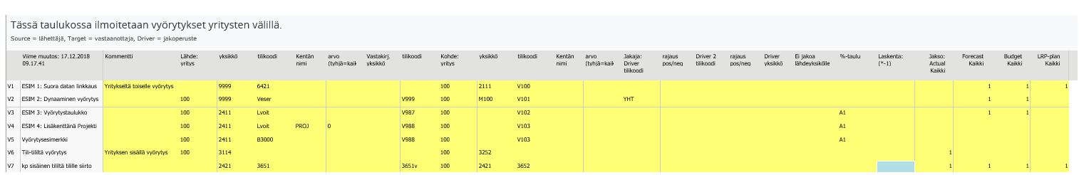 Kohdeyritys -organisaatio johon data vyörytetään. Käytettäessä vyörytystaulukkoa, vyörytystaulukko määräytyy tähän merkityn yrityksen mukaan.