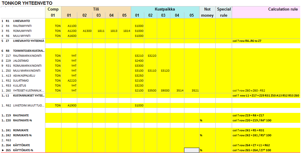 Laskentasäännöt (Calculation rules) = erikoisraportin sisäiset laskentasäännöt