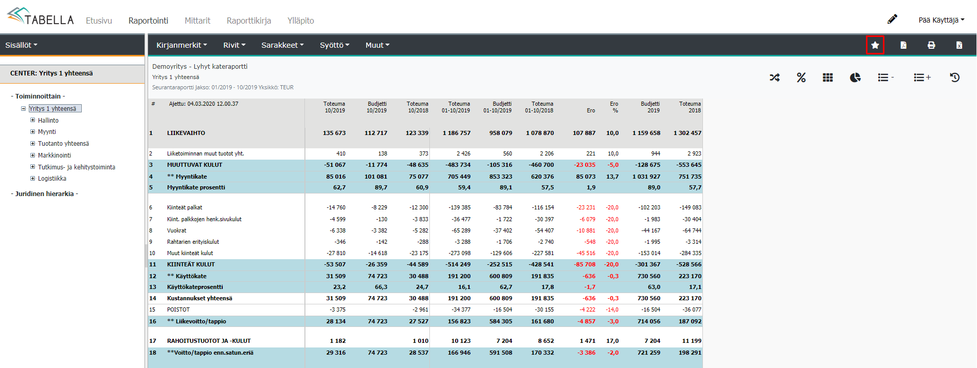 Raportit ja graafit, joita halutaan käyttää, tallennetaan Raportointi osassa Raporttikirjaan.