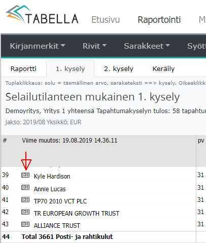 Avaa yhteenvedon kaikista rivin takaa piilossa olevista lisätiedoista.
